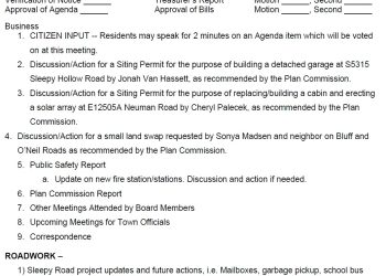 August Town Board Meeting – NOTE Change to BOR date!