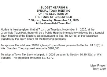 The Town of Greenfield is seeking bids for Hot Mix Wedging. Bid opening will be…